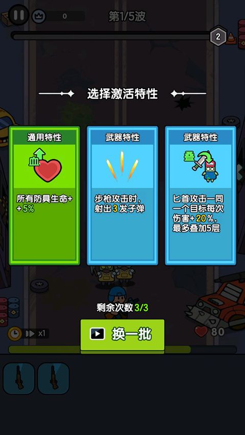 5、上方经验条满后可以升级,进行技能特性的选择,玩家可以按照携带的武器进行选择。