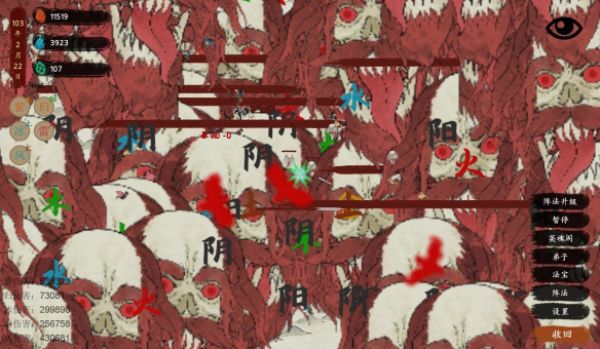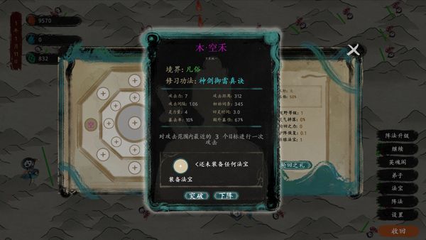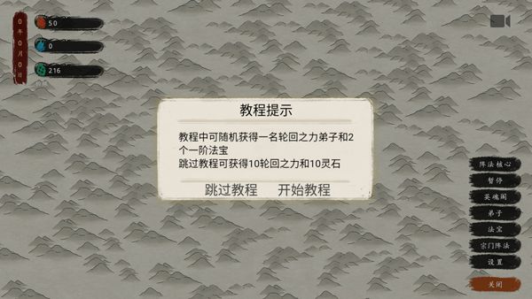 5、看完新手教程后,即可正式开始游戏,玩家需升级宗门阵法,以及招募弟子来抵挡魔物的攻击;