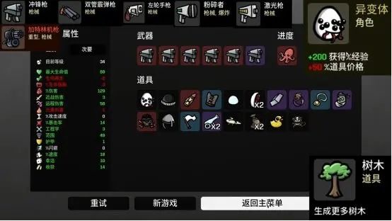 面板分析,道具价格+50%再加上+200%的经验获取的意思就是让你主要通过升级来获取属性而非道具,钱主要用来刷新、买武器和买机制类道具(比如长胡子的婴儿/头巾/跳弹)。