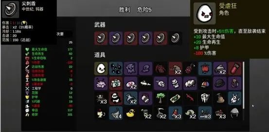 打法方面我最推荐走盾牌流,受 虐狂由于角色特性,整个流程都在挨打和回血,因此血的质量很关键,护甲那是多多益善,而红盾牌有着200%护甲的面板收益,再加上受虐 狂有着很高的全局伤害,这些都让它与受 虐狂相性很好。但是这个流派有个问题,那就是盾牌这个武器是需要解锁的,而解锁条件恰恰是通关一局受 虐狂,嘶这……