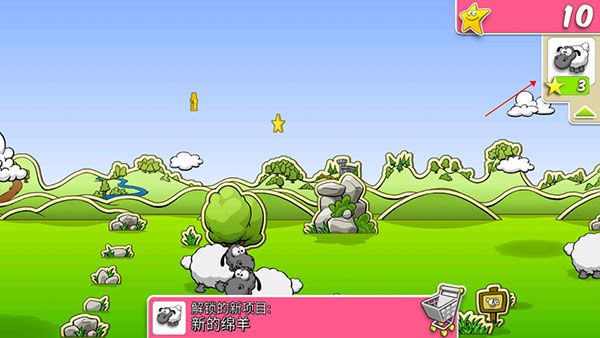 4、收集快乐之星并利用它们来购买新的绵羊,选择绵羊图标并轻按一下牧场。