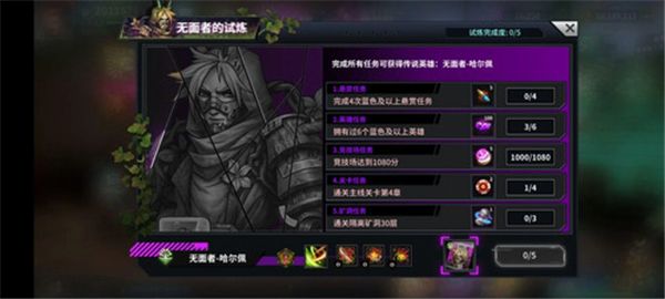 4、无面者试炼:通过完成此处多轮的任务可获得丰厚奖励,更可获得强力英雄无面者-哈尔佩及其专属装备!