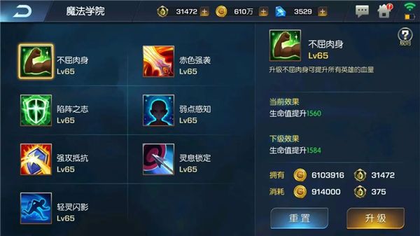 点击英雄,右下角有个技能升级,点开后便会看到英雄技能界面,点击技能旁边的“+”为英雄升级技能。