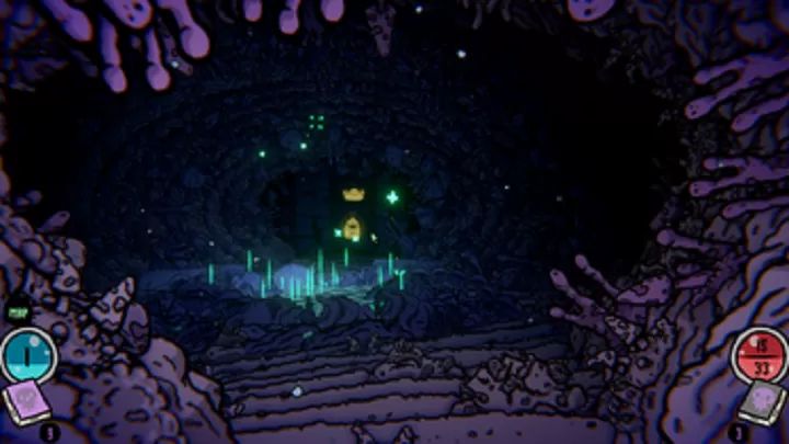 蘑菇愁云(Shroom and gloom)这款游戏是一种类似于《杀戮尖塔》的卡牌构建型Roguelike游戏。玩家需要使用设定费用的卡牌,对敌人造成伤害并击败之以推进游戏。与《杀戮尖塔》不同的是,《蘑菇愁云》提供了两套卡组系统:一套用于探索地牢的“探索卡组”和另一套用于战斗的“战斗卡组”。要打开封闭的门或是寻找地下的隐藏宝物,就需要充实你的探索卡组。游戏场景是从第一人称视角展开的,玩家可以根据手中探索卡组的情况和剩余体力选择不同的道路前行。