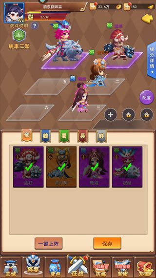 2、玩家可以在阵容里配置默认阵容,这样在征战之时就不必再花时间考虑搭配的问题了
