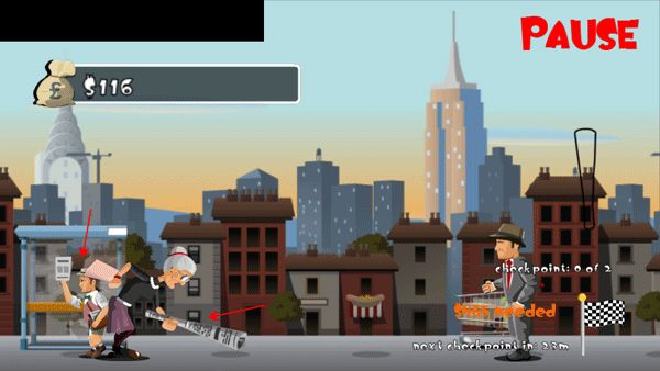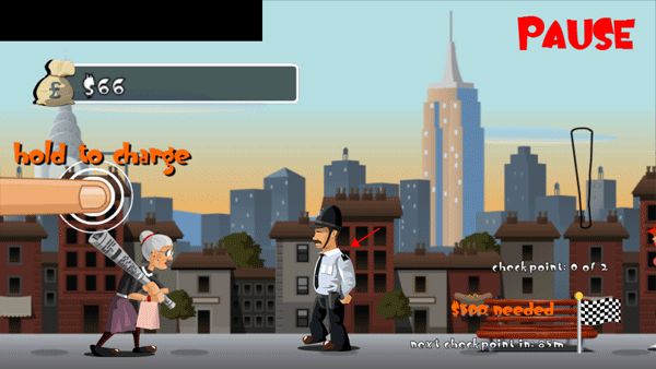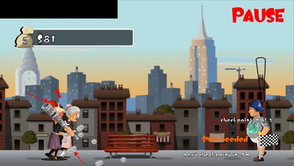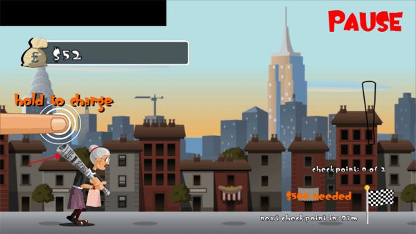 2、这款游戏的主角是一个奇怪的老奶奶,她手持一根棒球棒,在大街上到处打击路人,从路人身上收集金钱。你的任务就是帮助老奶奶打出金钱,按住一段时间可以续力打出更多的钱。