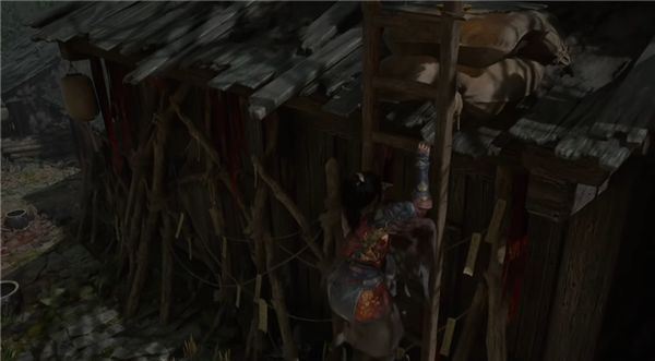3、到达梯子的位置直接爬上去,到房顶的位置。