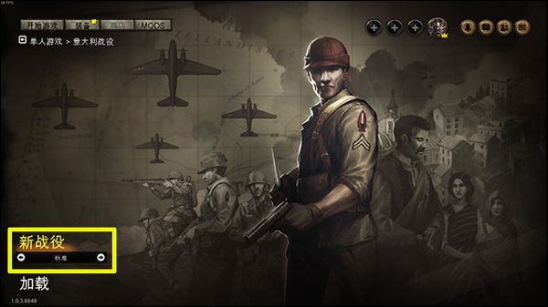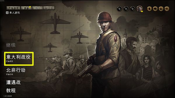 2、首先,在单人战役中找到并点击“意大利战役”选项开始单人战役游玩;