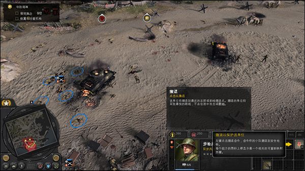 2、利用大胆的包抄行动,摸清敌军的实力。发动全新的步兵攻坚行动,在敌方驻营地抢先击垮敌军。还可使用高地地形,增加你的视野并取得上风优势。