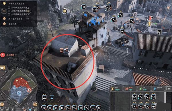 救出游击队后,继续向山上推进,占领酒店,酒店也会变成前线兵营。