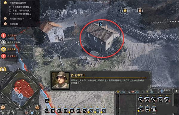 占领东北角的据点并消灭敌人,救出游击队,这个建筑就可以作为前线兵营,生产特殊兵种。