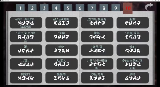 1、文字解读——在游戏中玩家会用很多不同的语言进行交流,通过怪物们的表情、手势以及他们指向的物体来推测和解读语言。这个世界的语言并不像人类的语言那样精练。
