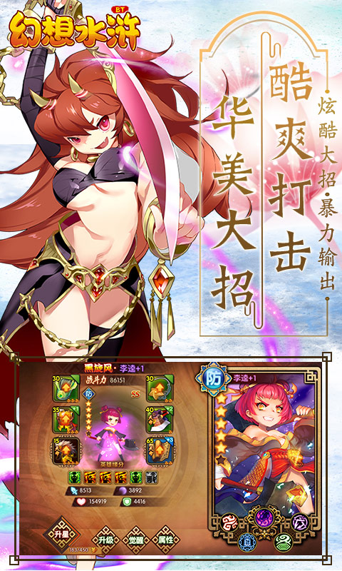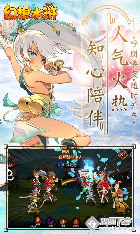 幻想水浒bt版。游戏采用节奏紧凑的半回合制战斗模式,在细腻精致的美术表现下,搭配首创的英雄技能羁绊玩法,让您在游戏过程中与梁山好汉一起闯荡江湖,享受追打、连击所带来的超爽游戏体验!