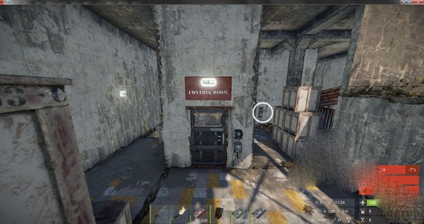 此时大楼内四个红色读卡器通电,可刷卡进入。收集完物资后,前往一楼大厅尽头,进入标有“AUXILIARY POWER”(备用电源)的房间,打开里面的电源,大门重新通电,按下按钮即可出门。