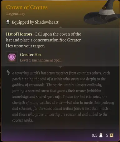《博德之门3》老妇之冠MOD,这个模组为游戏增添了一顶强力女巫帽,名为“老妇之冠”,这道物品曾被强大的女巫赫卡忒使用过。由一群被杀死和被绑的女巫拼凑而成,如今成为戴帽者的私人巫师团。感兴趣的小伙伴快来下载吧!