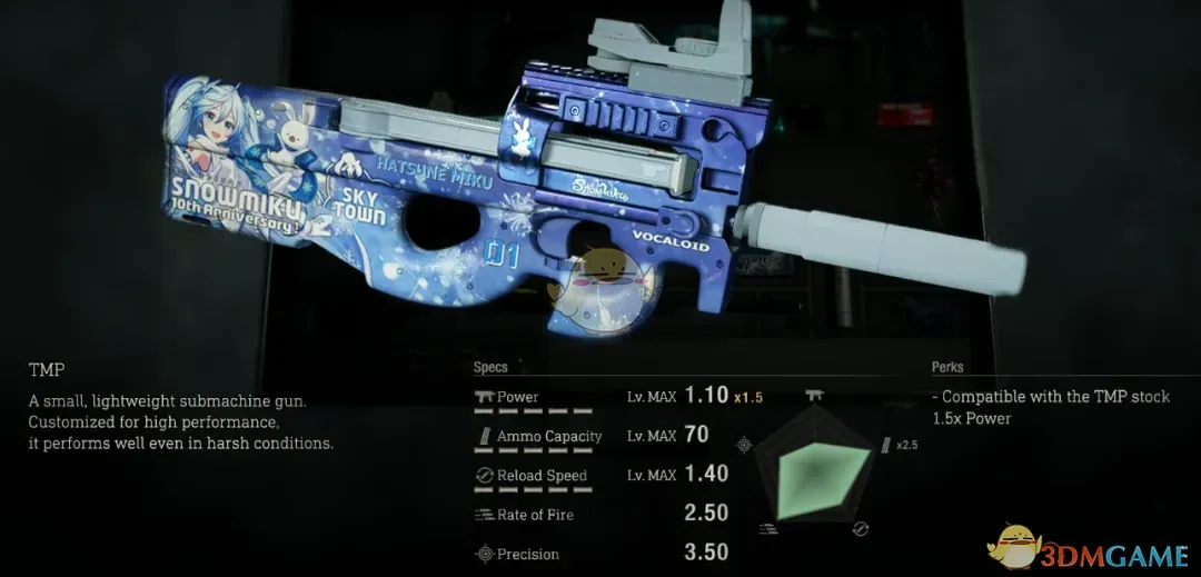 《生化危机4:重制版》雪未来P90冲锋枪MOD。这款模组为游戏添加了一把P90冲锋枪,并且重新设计了冲锋枪的枪身纹理,以虚拟歌姬雪未来为主题,带有多种相关色彩纹理和图案。感兴趣的玩家快来下载吧!