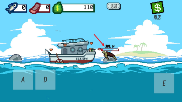 2、我们通过A、D键可以控制鱼钩钓鱼,越深的位置,鱼的质量越好。
