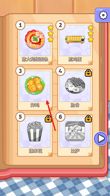 1、进入游戏后可以看到众多关卡,我们以第三关的炸鸡为例。