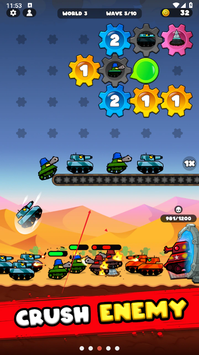 游戏中的坦克由各种齿轮组成,玩家可以通过收集和升级齿轮来提高坦克的性能和战斗力。