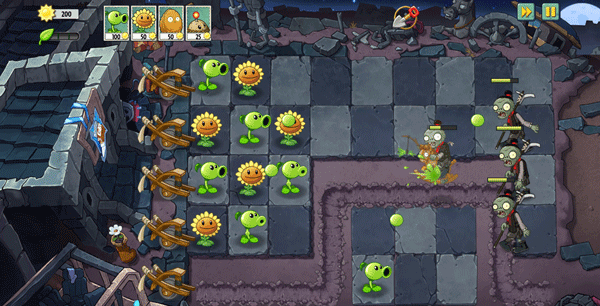 2、新手友好设计:首关内置动态教程,根据玩家操作习惯智能推荐植物组合,如自动提示“坚果墙+豌豆射手”经典防线。
