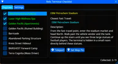 《赛博朋克2077》遗物终端清单MOD。这个模组增加了一个简单的游戏内界面,可以追踪所有9个遗物终端,这样你就不用再用alt-tab了。感兴趣的玩家可以到下载。
