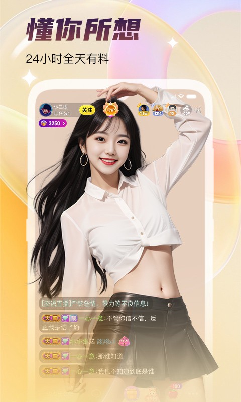 蜜语直播APP可以让大家随时打开直播观看高清的真人视频直播节目内容。在这里,有很多好看的直播,他们可以在网上和你喜欢的年轻女士和英俊的年轻男子调情。还有各种各样的才艺比赛。点击对方的直播室开始观看直播。这里有很多达人表演专家,他们每天都在网上进行各种各样的达人直播。你可以随时在线观看。无论你是想观看精彩的才艺表演,还是想与女主播们互动,都能满足你的需求。