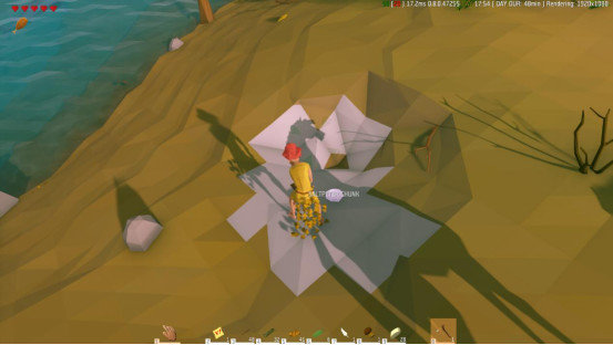 2、而在屏幕的左上角的小红心就是玩家的血量,总共5个血,当没有装备面对一只狼豹等肉食生物的攻击时,血量会迅速下降,所以前期要避开主动进攻的生物。艾兰岛添加了温度、饱食度等设定。这也就意味着当人物饥饿、寒冷时会持续缓慢掉血,总而言之,生存环境不合适的话,掉血是比较迅速的,所以玩家要尽快给自己组建起一个可以生存的空间。