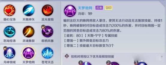 后期技能推荐(也是挂机推荐):剑刃冲击、冰雾结界、杀戮盛宴,天姬技能建议灵魂撕裂、苍穹天击、天罗地网。