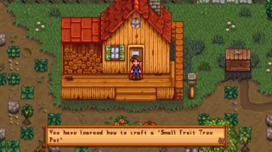 《星露谷物语》小果树框架MOD,这个模组允许您使用功能齐全的 16x32 和 16x16 结果树!这些树的放置限制较少,因此您可以根据自己的喜好自定义它们并将它们放入特殊的花盆中!添加了一个特殊的花盆,当您看到伊芙琳在重建温室时给您原始花盆的事件时,您将收到该食谱。该花盆仅适用于小果树,并允许更简单的树逻辑。感兴趣的小伙伴快来下载吧!