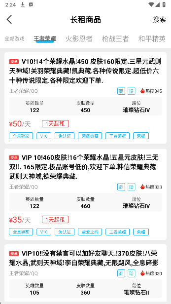 4、超值出租号:海量游戏账号,影视会员,0.1元内廉价出租。