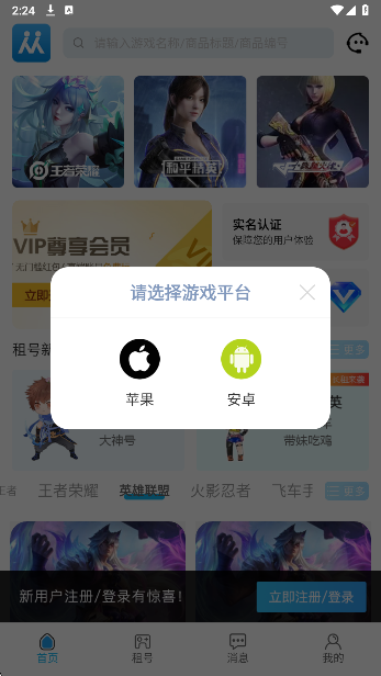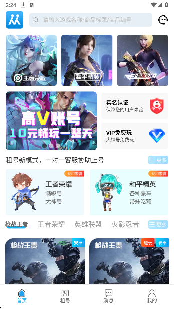 人人租号软件是一个专业的游戏租赁账号平台,人人租号提供各种热门游戏账号、视频VIP账号等账号租赁服务。人人租号的界面清爽简洁,功能齐全,游戏多样。无论你是王者荣耀、英雄联盟、交火、火影忍者、和平精英、交火、CF、LOL等游戏的忠实粉丝,还是独立主机游戏的深度玩家,都可以在这里体验游戏的乐趣。一键快捷登录,保证账号的安全。感兴趣的朋友不要错过下载人人租号。