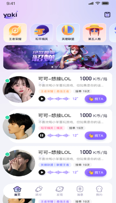 1、语音交友开始语音聊天并匹配在线实时语音呼叫的人。