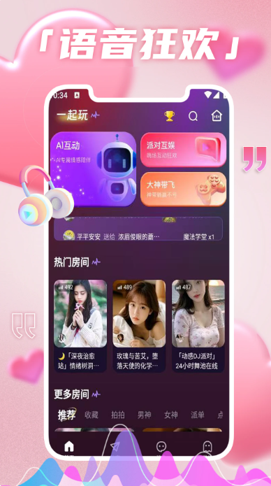 1、聚会交友在软件中寻找推荐的语音聚会,可以在线连麦交流并结交有趣的朋友。