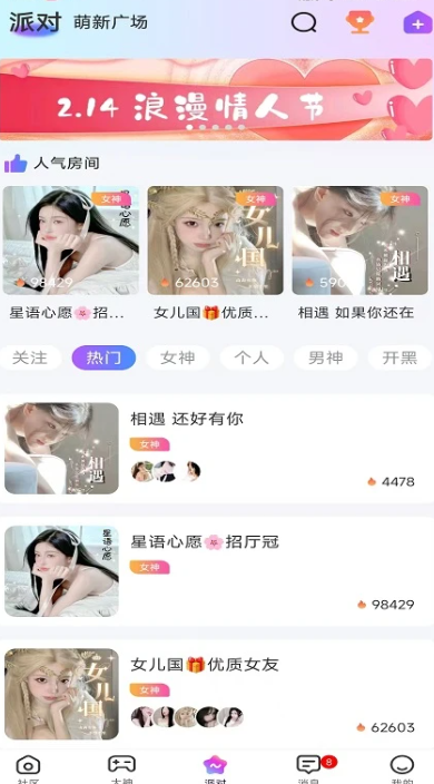 多样化的语音聊天和好友游戏平台,主要有语音社交、话题社区等多种玩法。