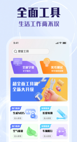 提供了多种工具,如全能计算,指南针,放大镜等,可以自由使用。