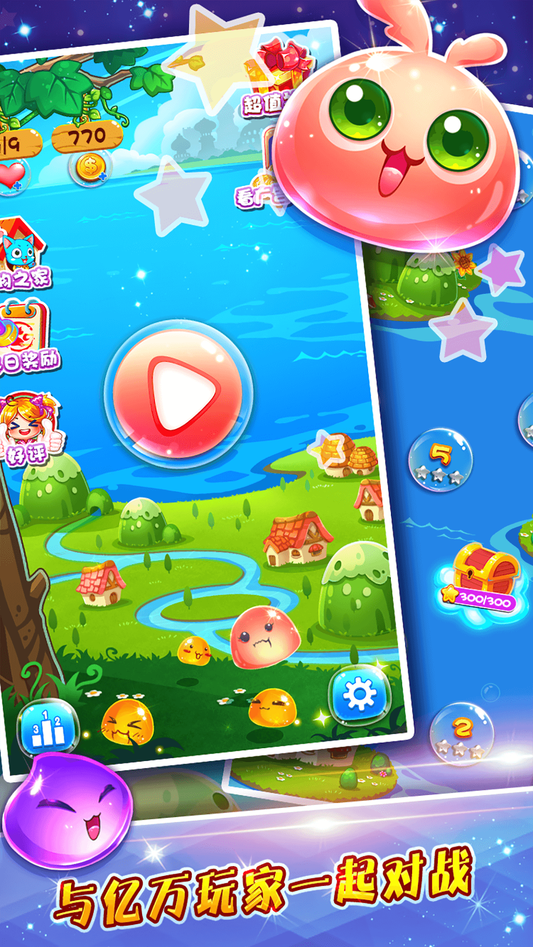 游戏规则简单,玩家只需要将相同的泡泡发射到一起就能消除,轻松上手。游戏过程中,玩家需要注意观察泡泡的形状和颜色,制定出合适的发射策略。