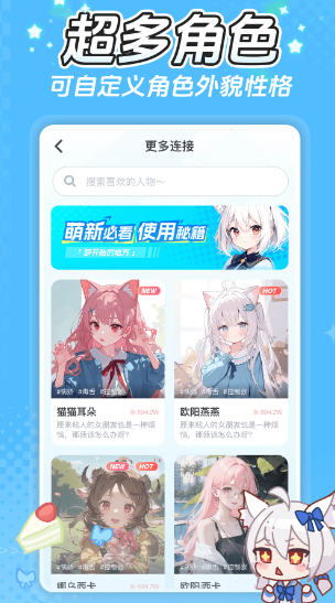 1、角色自由切换:100+内置预置二次元角色,一键切换不同对话风格。