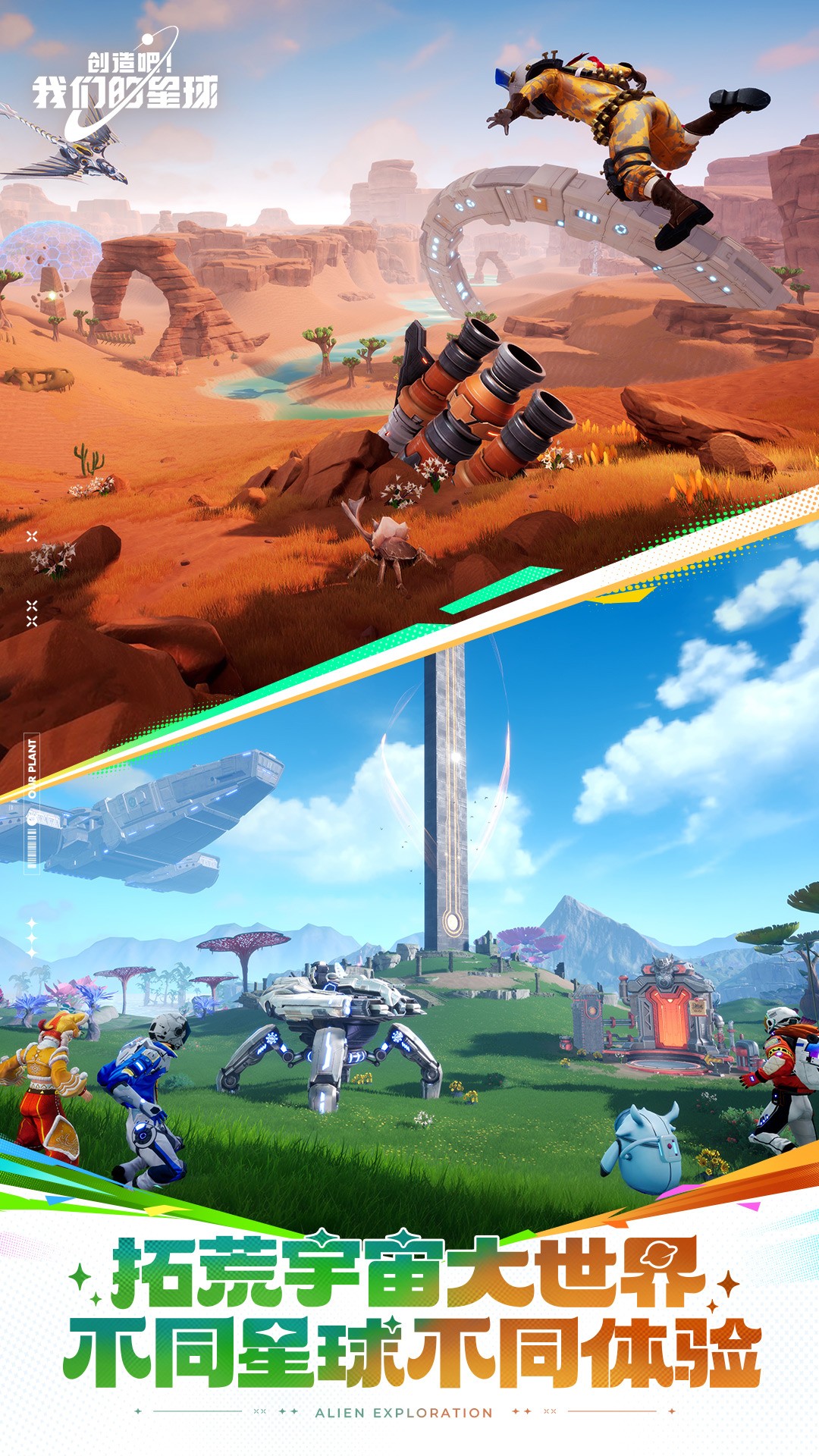 创造吧!我们的星球是一款基于虚幻4引擎精心打造的开放世界沙盒手游。游戏将故事背景设定于那无垠浩瀚、神秘莫测的宇宙之中,玩家将化身为勇敢的星际探险家,自由穿梭于各个星球之间,尽情探索未知的奥秘、积极开发丰富的资源,并在形态各异的星球上顽强生存。现在,就快来创造一个专属于你的星球吧!如果你已经厌倦了传统游戏的繁琐操作和复杂规则,那么创造吧我们的星球绝对是你的不二之选。