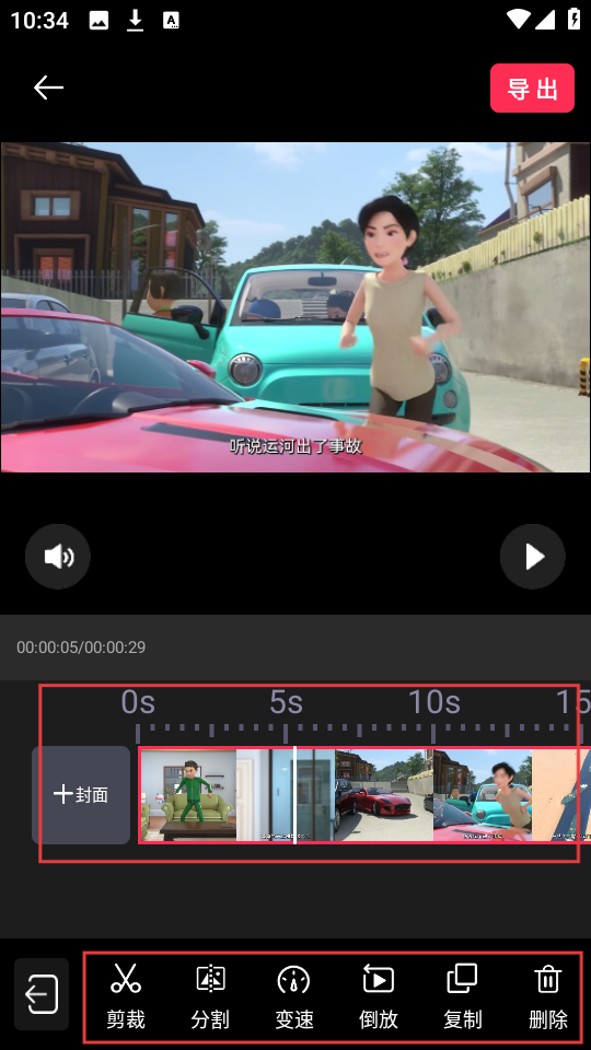 3、在视频轨道区域,能对视频片段进行操作,利用下方的剪裁、分割等功能,打造你想要的视频效果。